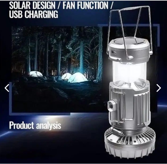 Mantente listo para cualquier situación con la Luz de Campamento o Emergencia, una solución multifuncional que te ofrece iluminación, ventilación y carga para tu celular, todo en un solo dispositivo. Perfecta para el hogar, campamentos o momentos de emergencia, esta lámpara es tu mejor aliada para mantenerte seguro y conectado.